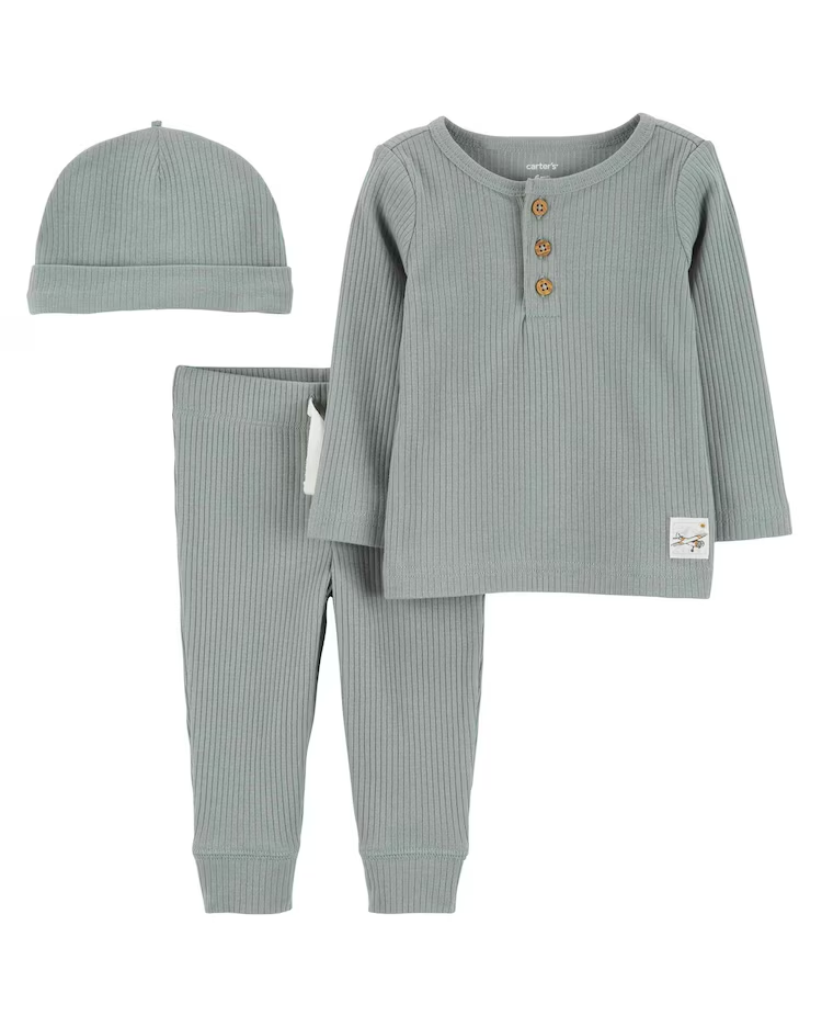 Conjunto longo bebê 2 peças e touca canelado verde | Carter's