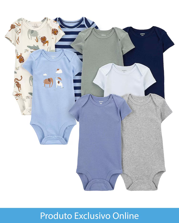 O Enxoval bebê 8 peças listrado leão multicor | Carter's será a pedida certa para aliar conforto e economia para o seu bebê. Produzido em algodão, o enxoval vem com oito bodies de manga curta, ombros traspassados e variam entre estampas diversas, mas também em versões lisas. Aproveite!