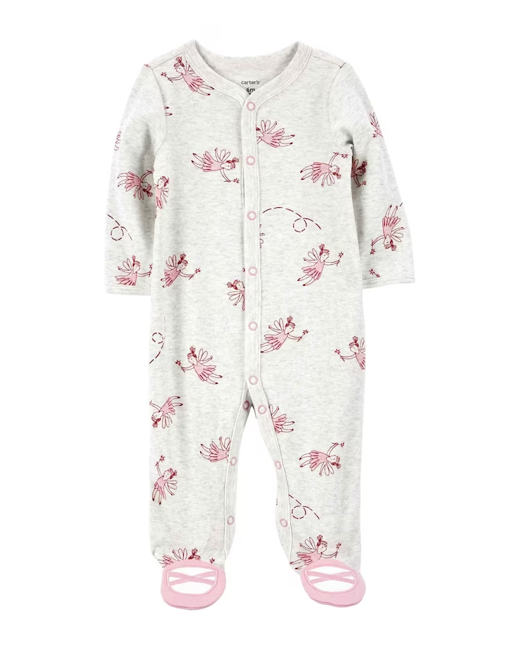 O Macacão bebê mescla de fadinha bailarina cinza | Carter's é confeccionado em material macio e aconchegante, com abotoamento frontal e entrepernas, mangas longas, gola redonda e estampa de fadinhas. É ideal para todos os momentos! O modelo esbanja fofura e delicadeza, invista, sua baby merece.